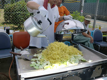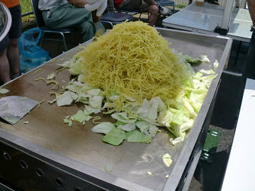 屋台と言えばやはりこれでしょう。 今年は 富士宮焼きそば。 麺が太い!!