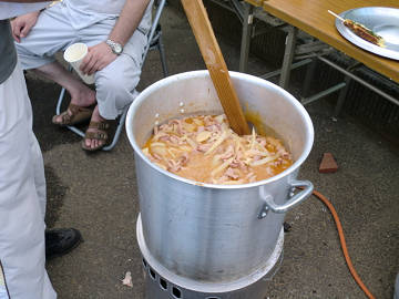 わが町内会でもっとも人気商品がこれ。モツ煮。 右は今年初めて挑戦したお好み焼き串。 手間は掛かりますが、ホクホクして美味しい。