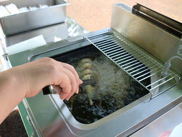 フランク餅。ボリューム満点ですが、揚げる方が大変。 焼き鳥は、人気メニュー。