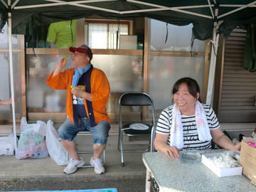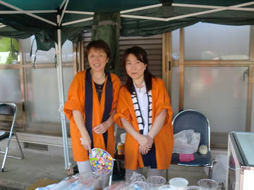 会長さんの挨拶で、午後三時から一般公開。 早速、近くの事務所から纏め買いに来てくださったお二人。