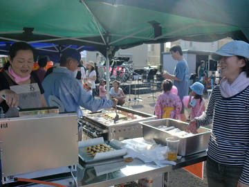 綿アメチームは機械が1台しかなく、最後のお客様のニーズに応えられず。 お好み焼串 チーム