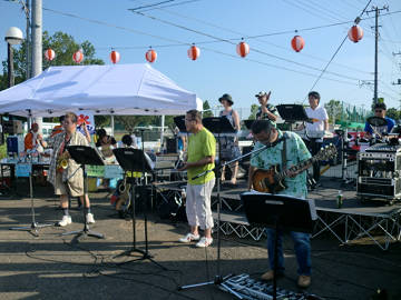 フランク餅チームはとにかく暑さとの戦い。 成田 R&M バンドも応援に駆け付けてくれました。