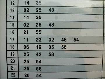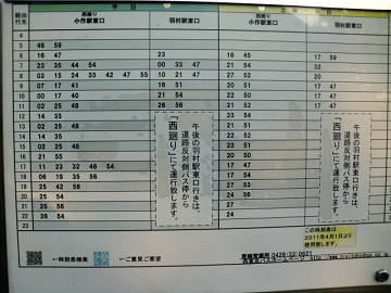 寮の近くのバス停。 通勤時間帯はほぼ10分間隔、それ以外は30分間隔。 このバスに乗れば、奥多摩線 小作駅までは10分ほど。