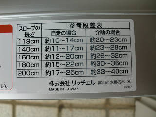 はい、スロープです。 「あっ、介護用品ですからね。 誤解の無いように。 車椅子用です。」