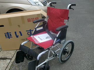 午後になると、車椅子も届きました。 今までは、レンタル品を使っていましたが、義母が介護施設に入ったこともあり、介護保険適用外となりましたので、帰宅した時のために、先のスロープと合わせて、自前で購入しました。