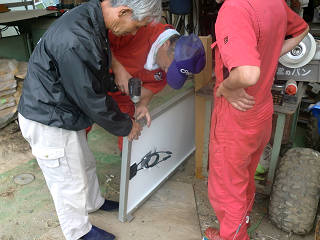 その三人、ひげのパネルの取り付けアングルをパネルに取り付けてくれます。 当の本人は???? 手出しする隙がありません。
