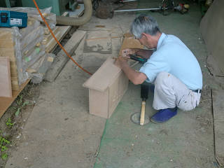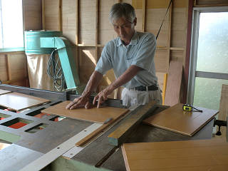 親方は・・・・大型のテーブルソーを使って何かを製作中。 慎重、かつ大胆に。