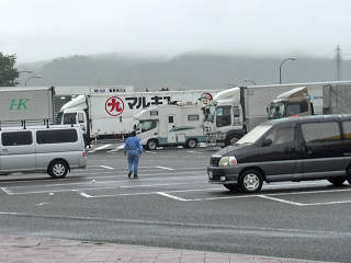 東日本災害支援からの帰りの愛媛県警の車両10台ほども昨日から停まったまま。 若い隊員たち、どうやって狭い車内で一晩過ごしたのだろうと(いや、東北からだからもっと長い時間???) 心配になります。