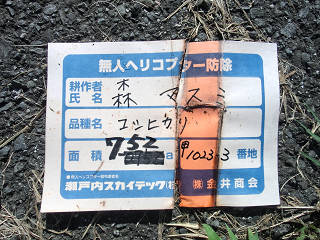 農薬散布は田植えの時とヘリからの散布の二回のみ。 無農薬と言う訳にはゆきません。