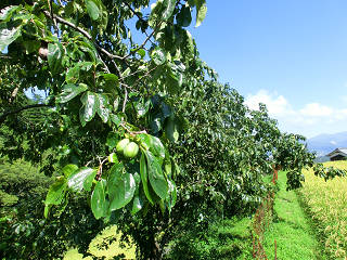 イノシシよけの電気柵。 庭先まで出没するようで、必須です。 渋柿は小粒ながら沢山実を付けています。 楽しみです。