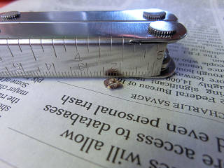 白い玉とばかり思い込んでいましたが、こげ茶色でした。 長いほうが7mm 短いほうが3mm 。