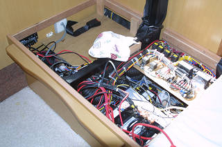 室内寸法を測るすーさん。 ひげは、不精していたサブバッテリーの配線工事。
