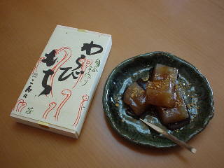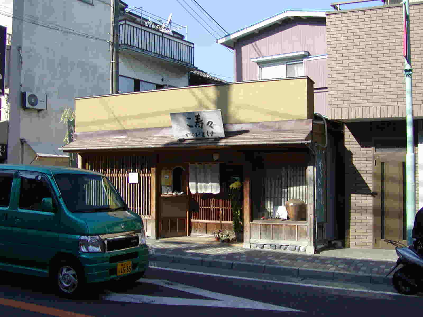 | 2001年12月16日 湘南便りその31:鎌倉散歩第5回 「こ寿々」 -------------------------------------------------- これまで、鎌倉のお寺さんばかり紹介して来ましたので今回は鎌倉の美味しいものにつ いてお話ししましょう。 江ノ電「和田塚」駅をおりて踏み切りを渡って真っ直ぐ西方向へ歩いて行きますと由比 ガ浜通りに突き当たります。その由比ガ浜通りを右手に行きますと由比ガ浜「こ寿々」 のお店があります。このお店は鎌倉でも有名な甘味処でして、名物「わらび餅」を味わ う事が出来ます。皆さんは「わらび餅」をご存知でしょうか? 「わらび餅」についてお店のしおりから紹介します。 ◆◆◆ 「わらび粉」はわらびの根から採取した澱粉ですが、生産されるまでにたいへんな時間 と労力をようするため国内での生産量は非常に少なくとても高価なものとなっています。 まず、一年目の二月にわらび畑を焼き、二年目の十一月から翌年一月にかけて、若芽が 出る前に根を収穫します。こうして収穫された根の中に含まれている澱粉はわずか四〜 六%です。この貴重な澱粉を抽出するため、根に付着している泥等の不純物を洗い流し 沈殿・分離という作業を幾度も繰り返します。さらに、抽出された純粋な澱粉を脱水し 網バットに並べて自然乾燥すること約五十日間、収穫からおよそ三ヶ月かけて、やっと 「わらび粉」が出来上がります。 このような工程を経てつくられた「わらび粉」は、非常に希少価値のたかいものといえ ます。 現在市販されているわらび餅の大半は、他の澱粉や増粘剤・寒天等で増量されているため、わ らび粉本来の独特な風味と食感が失われています。 「こ寿々のわらび餅」は、国産のわらび粉を使用しておりますので、独特の弾力ととろけるような 食感を充分味わって頂けます。 ほど良く冷やしたわらび餅にお好みの量の黒蜜ときな粉をかけてお召し上がり下さい。本わらび