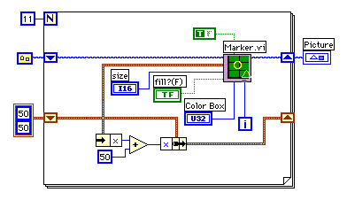 シンボルとしては11種類あるのでForループの中でMarker.viにループカウンターを接続してシンボルの形を変えながら描画命令をシフトレジスタに連結している。