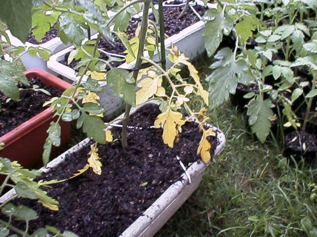 ちょっと失敗。下の葉が黄変したサンチェリー。 5/28/98
