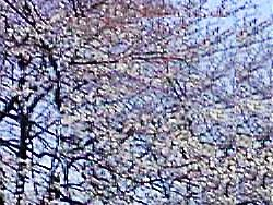 日当たりのいいところは、だいぶ咲いてきた。つぼみがいっぱいの枝は、赤っ ぽく見える。