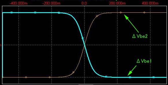 当然のことながらこの分圧関係と電流変化はtransistorのVbeとIcの関係がEXPOという要素と差動対における負帰還反応のなせる業からの結果です。