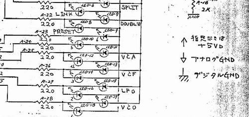 上の画像は Emu product catalogに載っていた E-muのsub moduleです。 このカタログにはSSMのICも載っているのでこのmodularにはてっきりSSMのICが使われていると長年思っていたのですが、最近NETで見つけたE-muのmoduleの回路を見ると基本ディスクリートの回路構成です。modular自体は1972年ごろから存在するようなので確かにそうかも知れないですね。(SSM chip自体は1977年から登場しているようです。)この為1977年?以降はSSM2040/SSM2050/SSM2055/SSM2020といったICが使われてはいますがnetにあった資料ではVCOはディスクリートでした。SSM2030(1979?)、SSM2033(1980)ということなのでModularには採用されなかったのでしょう。 SSM2030使用のsynthとしてはProphet5(rev1/2)、SSM2033はKORG MonoPolyぐらいしか思い浮かばないので使われたsynthは少ないかも。あとAudityのVioce Cardは全面的にSSMのchipが使われているようですがschematicsは見つかりませんでした(そもそも市販されていない)が1979年の設計というところではE-muのSSM Demo Boardのchip構成の拡張版だとすれはSSM2030なのではないでしょうか。 E-muのModular(*2)と言えば1977年ごろでしょうか何の雑誌かわすれましたがpolyphonic演奏ができるmodular synthがあると話題になったことがあります。なんでもその時の記事(*1)にE-muのmodularは専用のsynth ICを使っていると書いてあったように記憶していたので上記のようにてっきりSSMのICを使用しているのかと思っていたのでした。