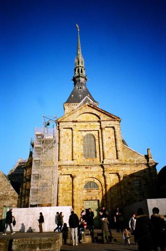 | モン・サン・ミッシェルの教会の前です。 | 教会の前からの眺めです。 |