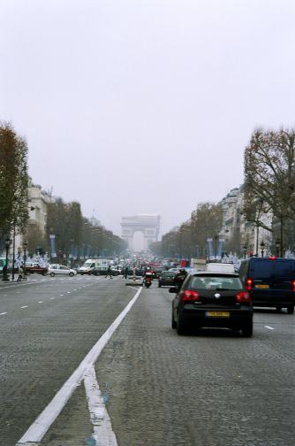 ![]() シャンゼリゼ通りです。 道の真ん中で信号待ちをしている最中に撮りました。 |
