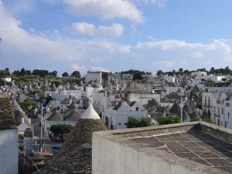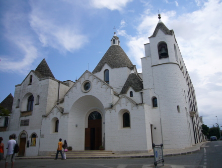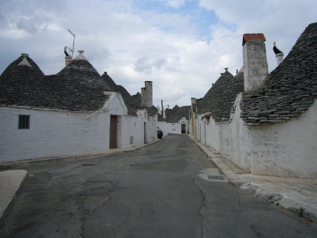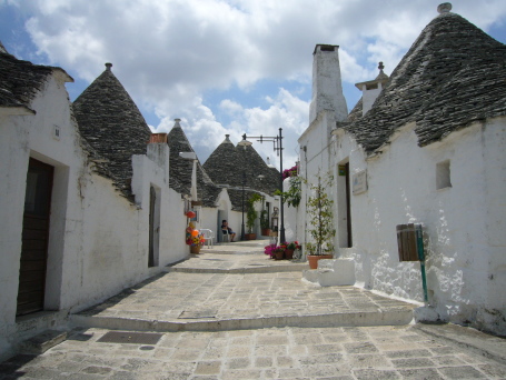 トゥルッリが立ち並ぶ市街地で、ほとんどがお土産物屋さんです。 アルベロベッロは白川郷と姉妹都市を結んでいるそうです。 |