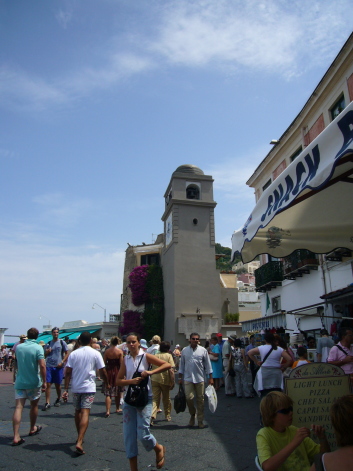 ウンベルト1世広場。 近くにはカフェがあり、その先にはブランドショップが・・・ |
