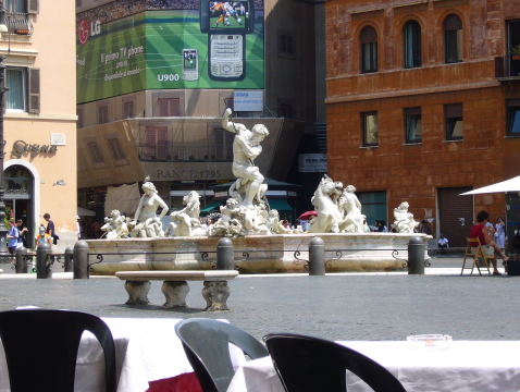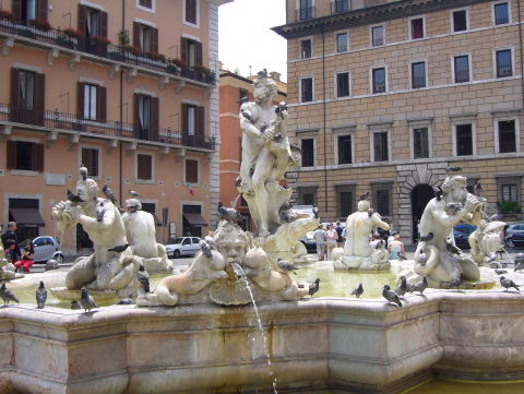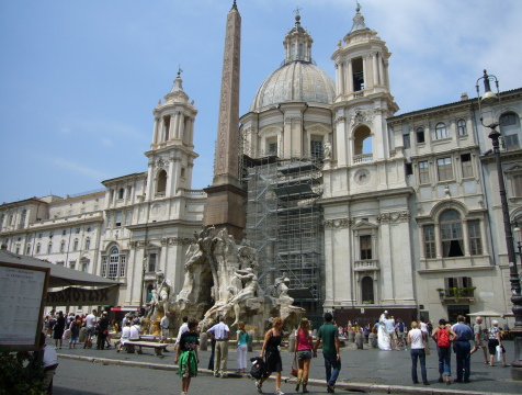 ナヴォーナ広場のオベリスクと四大河の噴水 ナヴォーナ広場に行くのに道み迷ってしまいました。 (ちょっと行き過ぎた・・・) |