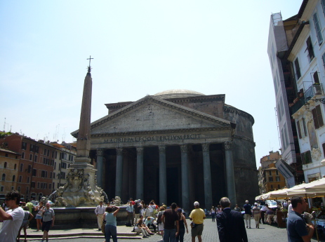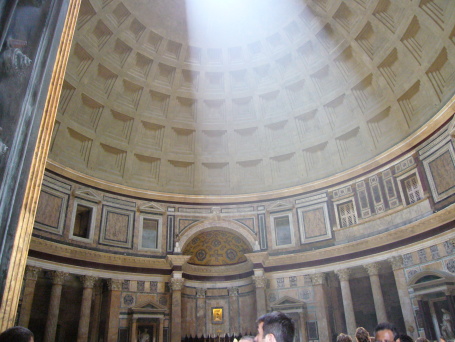 パンテオンの天窓から光が入ってきれいでした。 中にはラファエロが眠っています。 |