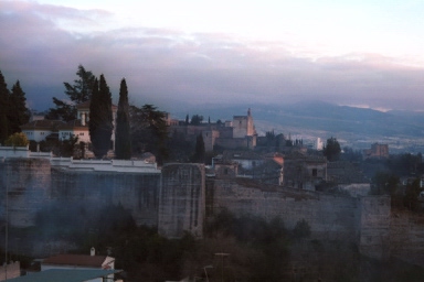 夕方のアルハンブラ宮殿です。 ホテルに行く途中にバスの運転手さんが写真スポットで止めてくれました。 |