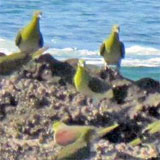 [9/19 大磯 照ケ崎のアオバト] 上野(尚) 鎌倉稲門会の有志を案内で行きました。9時前の到着時に100羽ほどの群が飛び立ちましたが、15分ほど待っていると5羽、10羽、20羽、50羽程度の群が次々に現れてくれました。 |