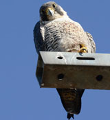 | カモはや少なめですが、きれいなヨシガモや、まだ白くなっていないミコアイサ。 猛禽はトビ、ミサゴ、ノスリ、チュウヒ、ハイイロチュウヒ、ハヤブサ、チョウゲン ボウ。写真は12/1に電柱の真下で撮ったハヤブサ。 | |