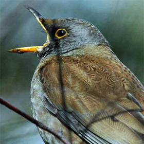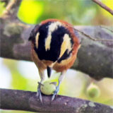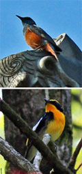 | (観察種)セキショクヤケイ、シロボシオオゴシキドリ、ミドリハチクイ、オオバンケン、オオスズメフクロウ、アカハラコノハドリ、ハイガシラモズ、カザリオウチュウ、ヒゴロモ、オナガベニサンショウクイ、オオルリチョウ、ロクショウヒタキ、シロボウシカワビタキ、クビワムクドリ、セボシカンムリガラ、ミミジロヒヨドリ、ハクオウチョウ、セアカウタイチメドリ、キバラタイヨウチョウ、アカマシコ等120種。 (写真はノドグロタイヨウチョウ) | |