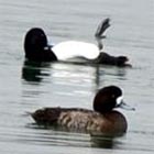 [3/5 揖保川河口] 立谷 河口でウミアイサ、ハジロカイツブリ、ホシハジロ、カンムリカイツブリ、スズガモ キンクロハジロなどが浮いていて、離れたところでスズガモが仰向き 行動をしていました。 |