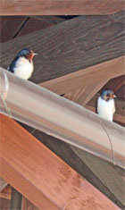 3/29 石神井川上空をツバメとイワツバメの群れ。 例年営巣するTAXI修理工場前の電線に1羽のツバメが長時間とまっていた。 加藤H 3/31 御殿場線山北駅の木造駅舎で、古巣跡の近くに2ペアのツバメがとまる。 (上の写真)高野T | |