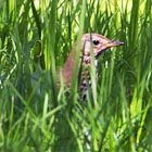 [5/5 ウズラの鳴き声] 岡部 川島町の麦畑の間の休耕地で久しぶりにウズラの声を聞きました。 昼前の10分間ほど盛んに鳴いていましたか姿は見えず、 翌朝、再挑戦しましたが、今度は声すら聞けませんでした。 写真は川島町の水田に20羽ほど群れていたムナグロの1羽、 |