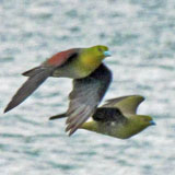 [8/31 大磯・照ヶ崎のアオバト] 上野(尚 朝6:45からの3時間で、最大の群は約250羽でした(主に♂と幼鳥。2度目の繁殖中で午前中は♀は抱卵)。またアオバトを狙ってハヤブサが数回現れました。 |
