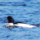 | 上総一ノ宮の城之内海岸でアラナミキンクロ♂を観察後、 銚子へ。堤防が工事中でカモメは僅か5種。 薄暗くなって神栖市の神之池でミコアイサ♂が数10羽とヨシガモも少数観察。 カモ類15種(オカヨシ、ホシハジロ、シノリ、アラナミキンクロ、ビロードキンクロ、クロガモ、ミコアイサetc)など、合計では42種 (写真は1/19大場撮影) |