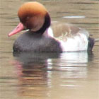 [12/10 大田原市の羽田沼] 石川(敏 アカハシハジロ♂1(写)、クビワキンクロ♀1を観察。 カメラマンなどが大勢来ていました。ほかに白鳥2種、ヨシガモ、ヒドリガモ、 ホシハジロ、ミサゴ、オオタカなど計24種。 |