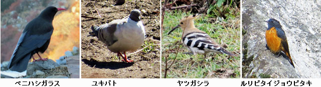 [7月 スイスアルプス] 川原林 観光旅行の途中、ユキスズメ、イワヒバリなどの高山の鳥、特に キバシガラスはいずれの山岳展望台でもごく普通に見られました。 他にもクロウタドリ、、シロビタイジョウビタキ、アオガラ、ズアオアトリなど38種を確認できました。 |