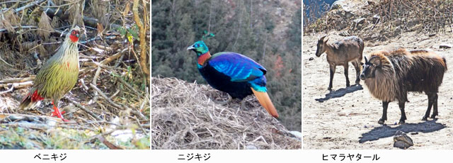 | ネパールの国鳥ニジキジもしっかり見ることができました。しかし夕食時、メンバーの一人が食欲不振を訴えたのです。高山病の不安が頭をよぎりましたが、明朝まで様子を見ることにしました。 | |