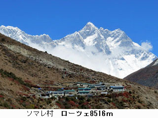 | 5日目はタンボチェ3,867mからソマレ4,010mまでの比較的楽なコースです。とは言っても初めて標高4,000mを超えます。メンバーの息遣いも荒くなってきました。ソマレは小さな村で、小さなロッジに宿泊者は私たちだけ。静かな夜を過ごしましたが外には氷が張っていました。降るような星空も凍っていました。 |