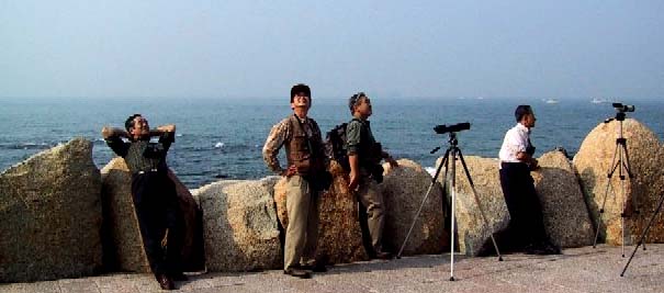 未明に到着した時は既に、伊良湖岬の恋路が浜の広い駐車場はほぼ満車状態。 明るくなるのを待ちかねたように、それらの車から人々が、三脚が、そして スコープや望遠レンズが吐き出されてきました。