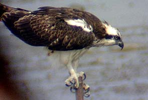 5日の午後と、翌6日の午前中は伊良湖岬から離れて汐川付近をまわって、 シギやチドリを探しましたが、最初に紹介したチュウヒや、その近くにいた 6羽のケリ、そして干潟にいた銀杏羽に換わったばかりのオシドリのほかは、 オグロシギ、ソリハシシギなど比較的普通に見られる種類ばかりで、特記す べき種はいませんでした。