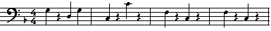 次にコードが変わるときは、3拍目にもルート音を使うか、3拍目で5度音を使 った後、4拍目にルート音を入れる方がいいかもしれません