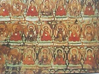 千仏、説法図が描かれる。目をえぐりとられた菩薩の姿が無残である。