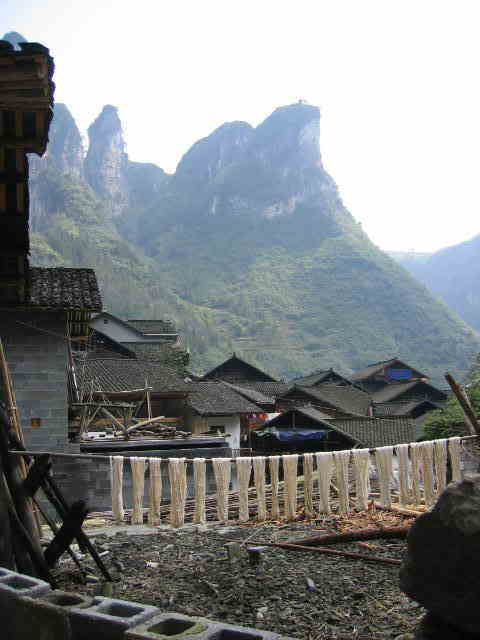 苗族の村は奇峰が聳える谷間にある。