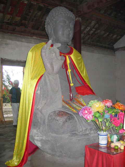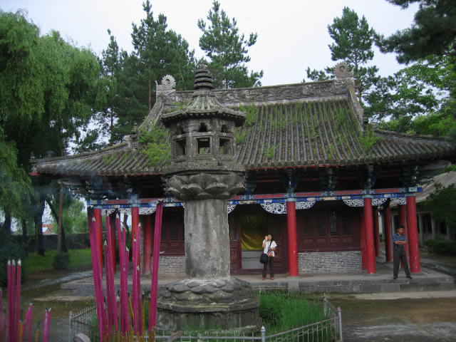 最奥の三聖殿がある場所は渤海時代は主殿であった。このなかに日本の飛鳥仏のような石彫大仏が鎮座している。文化大革命で壊され失われた部分は復元されているのが痛ましい。