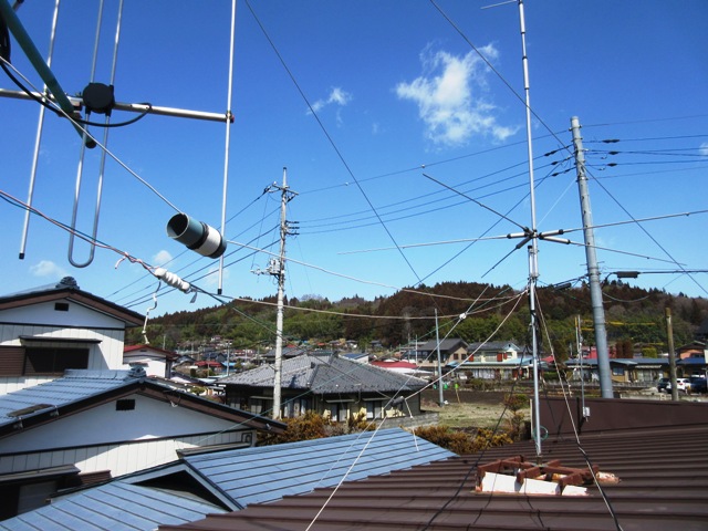 アパートの屋上に設置した145Mhz5エレ八木スタック、HF DP−CP5 GPアンテナ