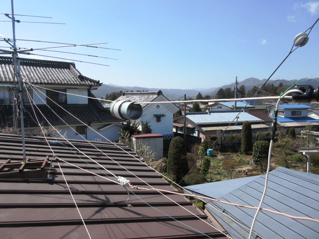 HFアンテナを車庫の屋根上に移設、ラジアルをワンサイド形から放射形ラジアルに改善しました。
