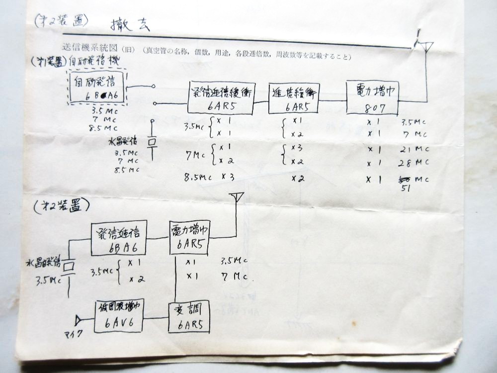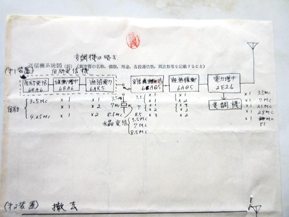 昭和時代の送信機設備の回路図(昭和42年5月30日提出した変更届より)